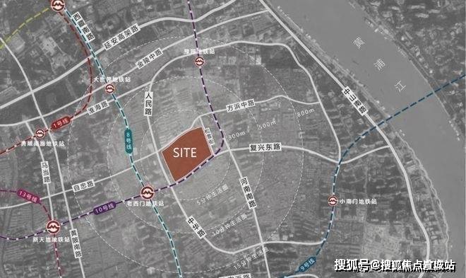 上海壹号院位于中华路和复兴东路交汇处,总建筑面积约23万方,距离新天地直线距离约900米、陆家嘴直线距离约2公里、外滩直线距离约1.3公里。