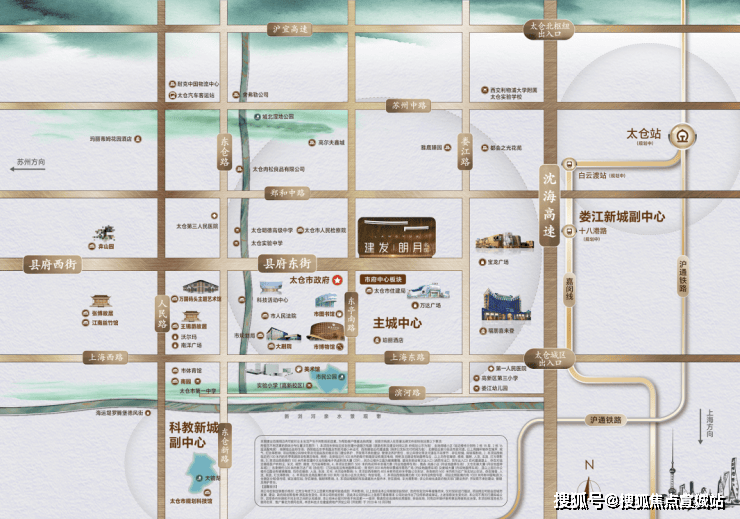 板块内核聚华景城市中心商务楼、汇金大厦、财富广场和商务写字楼,虹吸全城财富和人才,定义太仓价值高地。