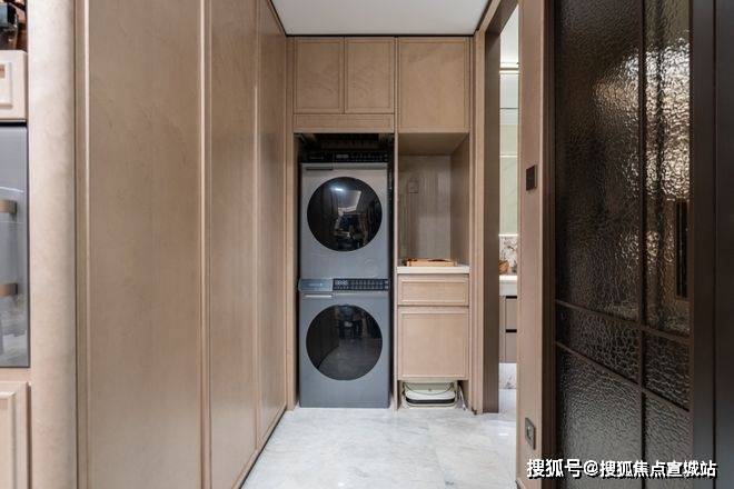 S墙嵌入双开门冰箱,一下子解放了餐厨空间。