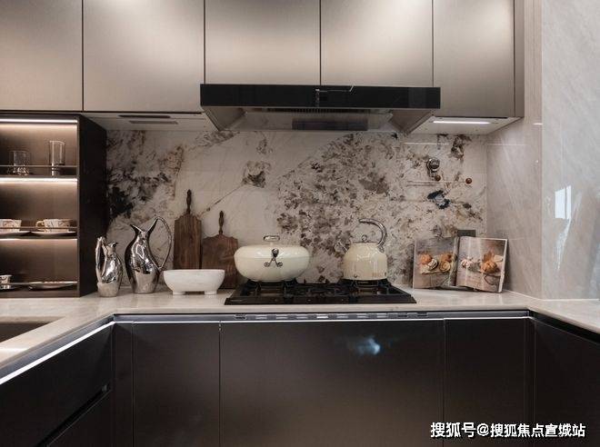 比如说餐边柜+操作台+洗手台一体化设置,让这个空间不再单独的满足于简单的吃饭、客厅休憩。