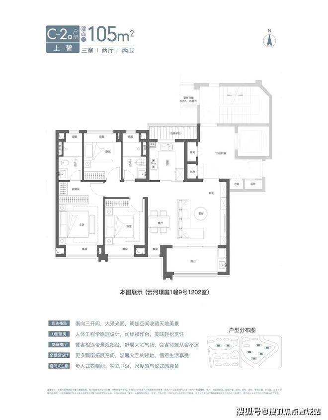 户型特色:89㎡户型三开间朝南,采用洄游动线设计;105㎡户型三开间朝南,北向次卧与书房可根据需求合并;129㎡户型一梯一户,横厅设计,客厅面宽 6.2 米,连接 7.2 米宽景阳台。