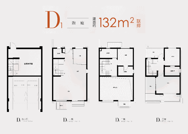 联排主力户型建面约132㎡的D1户型,地下一层层高约5.4米,可改造为两层空间,不计入建筑面积。