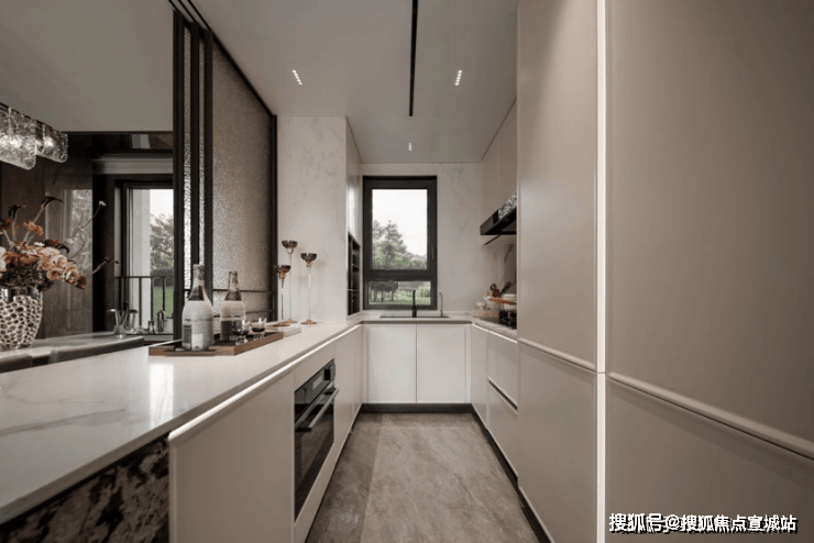 厨房方面,西门子或同档次品牌的燃气灶、抽油烟机、蒸烤箱、洗碗机、嵌入式冰箱五件套;还有细节上的一些配置,例如燃气热水器、末端直饮、凉霸等统统安排上了。
