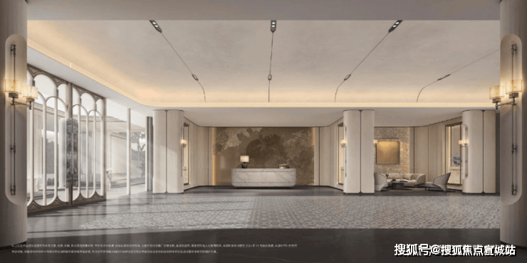从步入社区大门开始,约70米超大尺度门庭、奢华酒店般的港湾式落客,就将仪式感便顶格拉满;星级酒店大堂,内部多处装置融合非遗技艺美学,生活在尊贵与艺术之间巧妙平衡;进入下沉式中庭花园,归家路上移步异景;单元入户入口延续奢华酒店质感,采用奢石与铝板叠加的奢华设计,碰撞法式圆润线条,仿佛艺术殿堂。