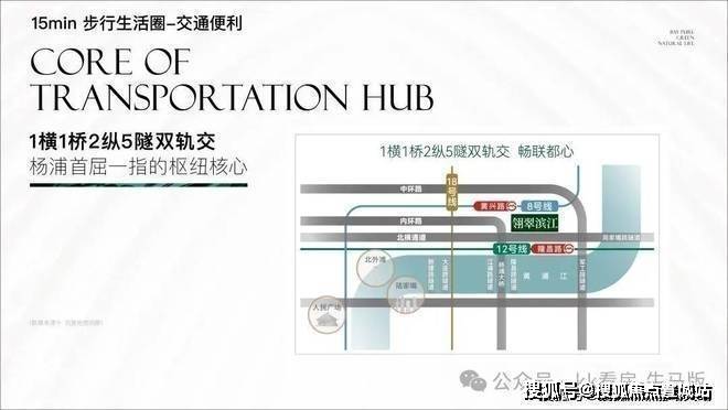 交通配套:距 12 号线隆昌路站约 600 米、8 号线黄兴路站约 800 米;近周家嘴路高架、内环高架、北横通道,自驾便捷通达陆家嘴、人民广场等核心区