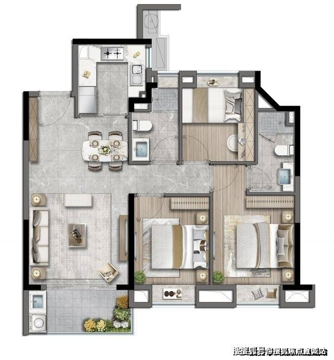 不到约89㎡的建面即能实现3房功能性还有2卫,主卧实现套房配置,放眼全市性价比都分外突出!