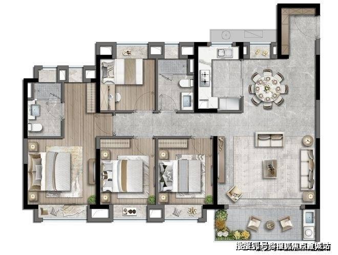 仅仅约129㎡,实现4房功能性,匹配当下越来越多的二胎和三代同堂家庭!