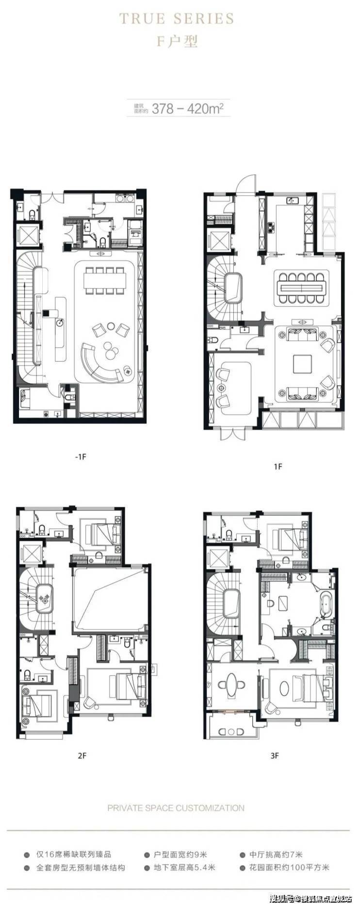 楼盘户型:11种户型,建面:184-305㎡3室2厅3卫(建面:184)