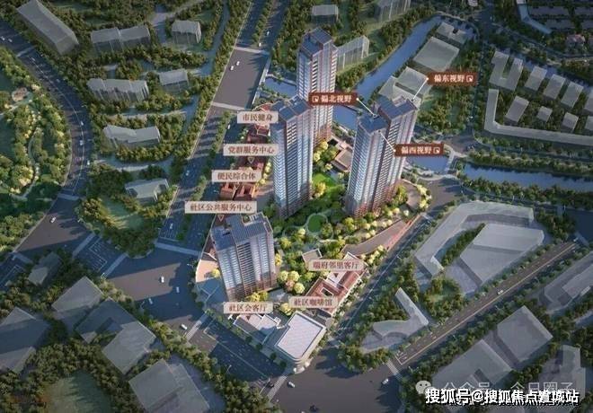 建筑设计:由 GOA 大象设计操刀,采用 Art Deco 风格立面,全玻璃幕墙搭配古铜色金属框架,高层楼栋通过南偏东 21° 黄金倾角设计,实现 90% 房源观江。