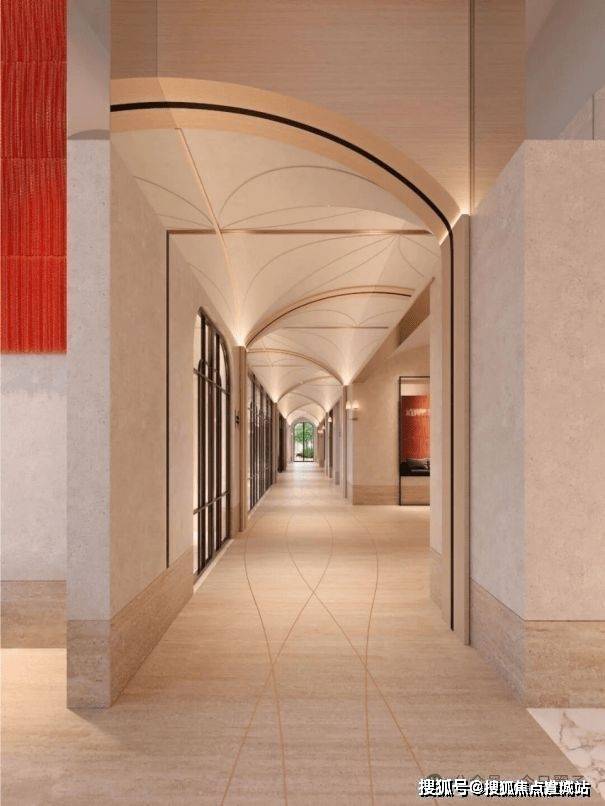 )全系风雨连廊: 项目打造了上海市场罕见的“流线全覆盖”连廊系统。这条连廊不仅是遮风避雨的通道,其下方空间更被打造为一座与花园景观交融的“线性美术馆”。让业主归家成为穿梭时空的艺术之旅。