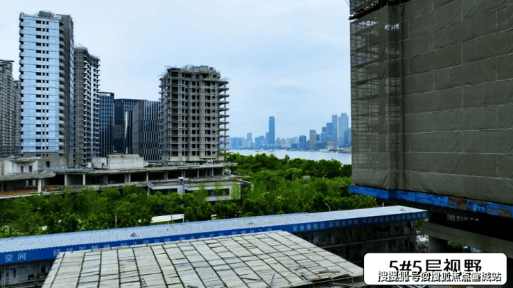 5#楼按照现场视野模拟,由于南侧1#楼的遮挡,若要纵览比较全的江景,需要20层及以上。