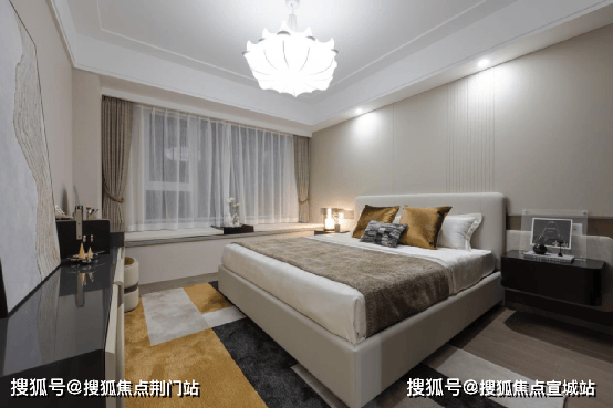 套房式主卧更是尊崇无比,采用LED灯带吊顶,灯光点缀,倍感温馨.瞰景大飘窗设计,拨开窗帘就能沐浴阳光,尽揽室外美景;尊享独立卫浴,夜深了看完世界杯比赛去沐浴洗漱,也不怕打扰到早已休憩的父母.