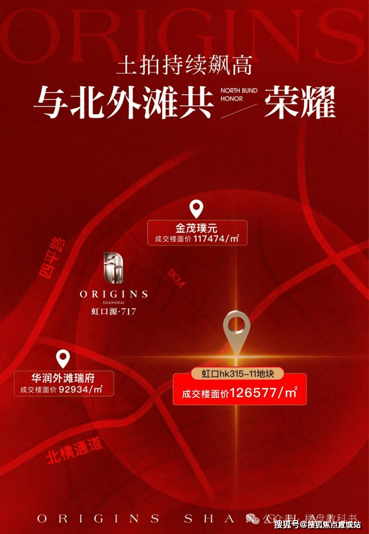 回顾北外滩土拍史,板块地价的跳涨绝非一时喧嚣,而是一步一个脚印,走出了一条漂亮的攀升曲线。2024年11月,华润置地51.36亿拿下北外滩新地块,楼面价92934元/㎡,溢价率11.97%。四个月后,金茂&庆隆以89.64亿元摘得新地,溢价率冲至38.2%,楼面价高达117474元/㎡。再到本次土拍再破纪录的126577元/㎡,每一次落槌,都是对北外滩价值爆发的坚定投票。如今虹口内环再添“地王”新丁,为本就热势难挡的“四平路三兄弟”再加一把“火”,豪宅扎堆,成为上海置业圈内新的热议话题。