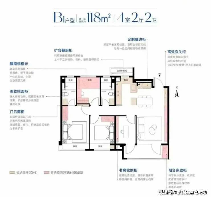 户型:95㎡三房、115㎡可变四房(得房率78%-81%)