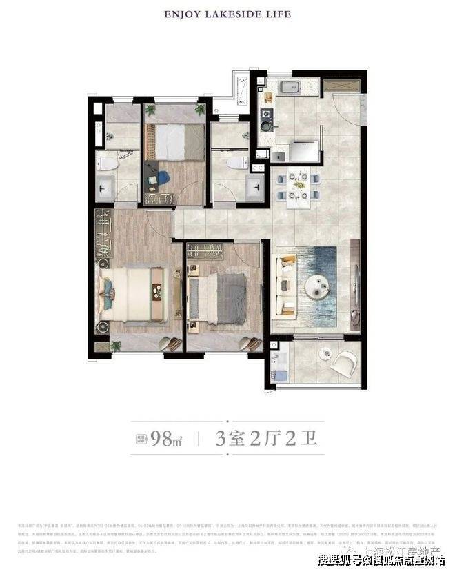 98平样板房照片三房两厅两卫