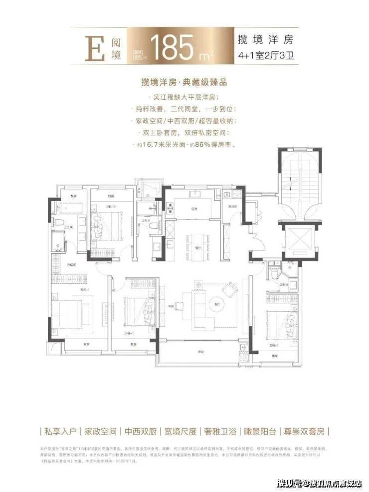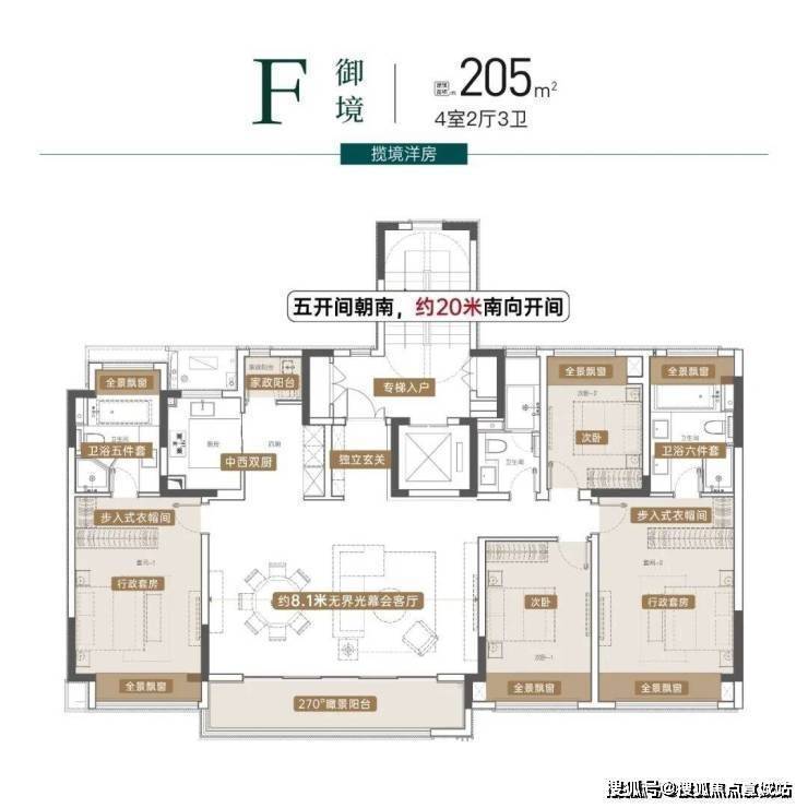 建面约205㎡洋房新品,央景楼座,俯瞰一园精粹。约20米南向五开间、约8.1米巨幕横厅、双奢适套房主卧、中西双厨,处处彰显豪阔领域。因市场罕有的宽境尺度、高阶的精工标准、纯粹低密的观景视野,成为本次加推的明星户型。