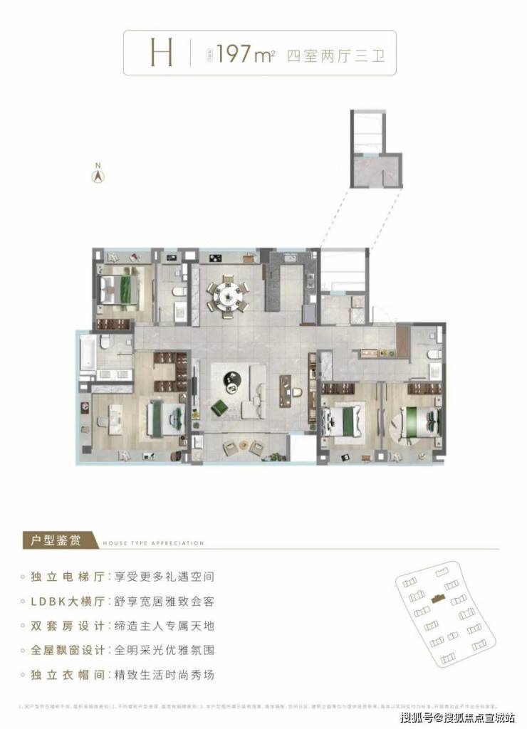 【建筑风格】现代简约风,外立面采用大面积玻璃加铝板,打造非对称L型立面,材质造价更高,抗腐蚀性程度更高。