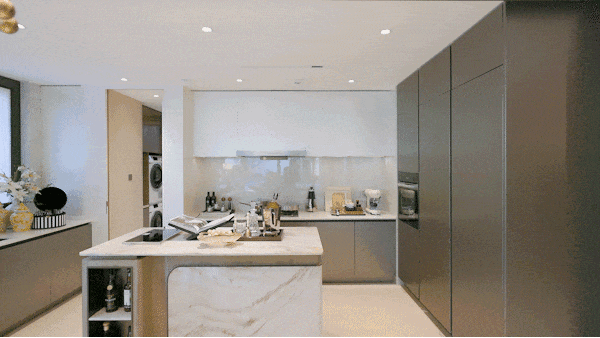 半开放式厨房北侧 衔接独立家政间以及设备平台,与居家互不干扰。