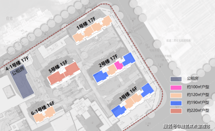 作为首推地块,主力面积段为约190㎡以及120㎡两档,5号楼楼王则为约220㎡顶豪,以及少量约100㎡产品。