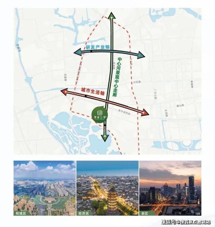 项目位于相城、姑苏、新区三区交汇处——虎丘湿地公园北黄桥板块,占据“三心两轴一廊规划”的重要区位,是自然资源、城市规划、产业布局正在全新融合的一个板块。