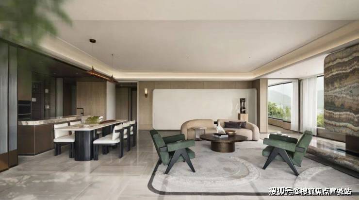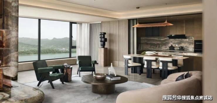 天然石材、木材与黄铜调和出空间醇厚质朴、温润坚定的雅奢调性,亲切而放松。