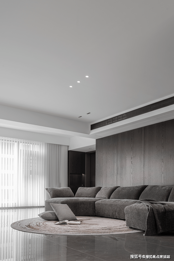 灰白色的整体调性,营造出安静惬意的居家感受。客厅采用爱马仕灰大理石,细腻的石材纹理质感,层层递进,开启视觉延展。