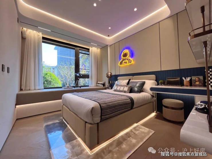 但得益于无连廊+飞机户型带来的高得房率,这个户型的尺度感非常惊人。
