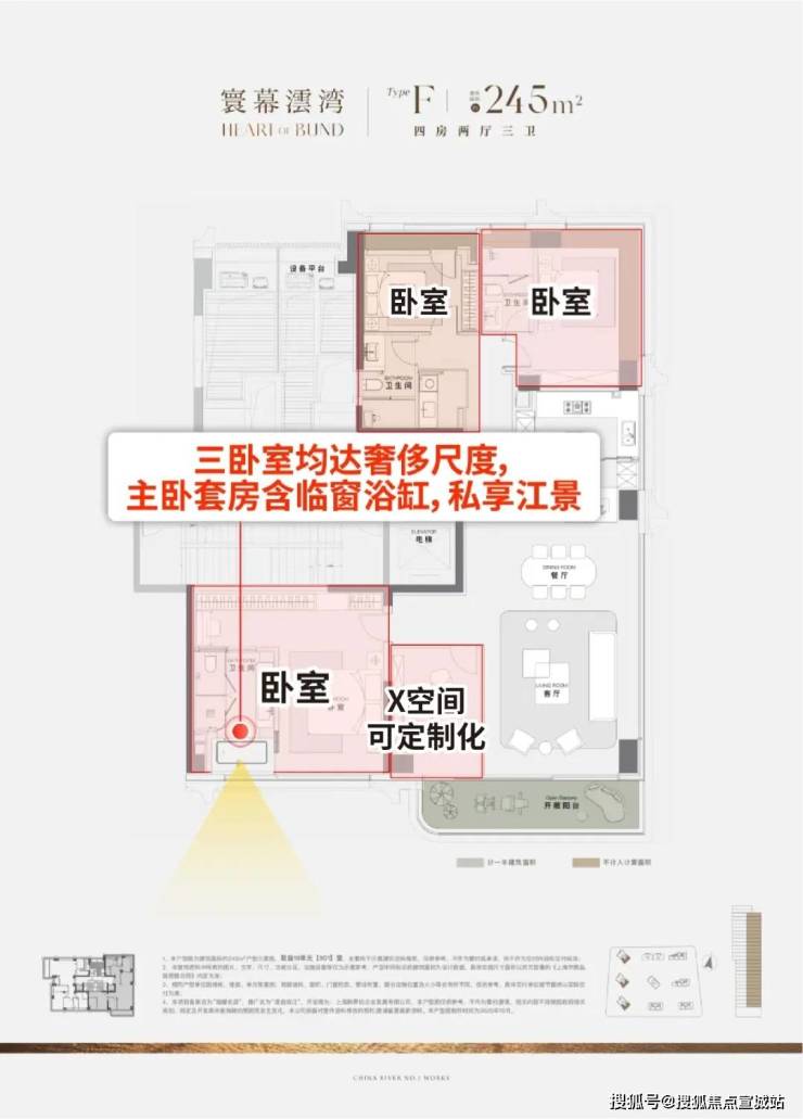 ④三卧全尺度奢适,主卧临窗浴缸瞰江!X空间定制方案可选,实现多场景布置!