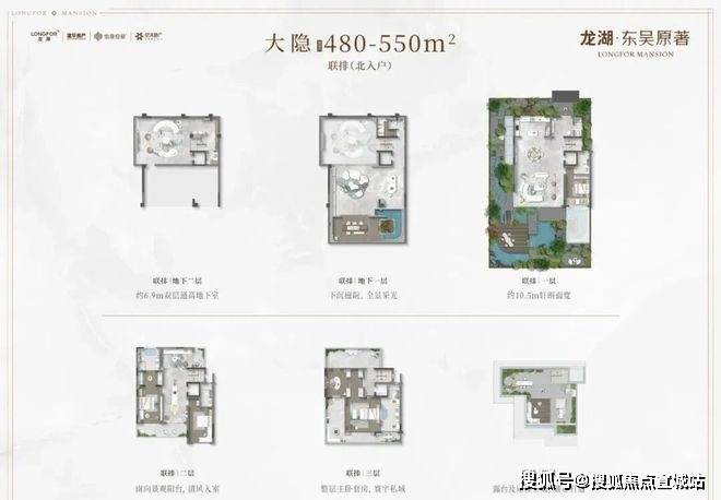 联排别墅:独门独院,6.9米地下挑高,露台面积约115㎡,使用率高达668-738㎡