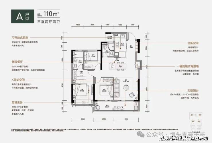 5、南向超宽敞近6.7m面宽双阳台约11㎡(阳台算一半面积);