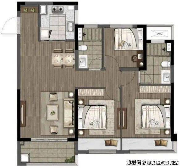 建面约115㎡三房两厅两卫