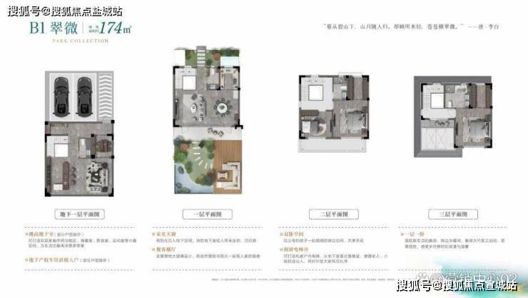•174㎡雅致四院:前庭后院双院落设计,6.8米横厅连接观景露台,主卧套房配备全景落地窗与独立衣帽间;