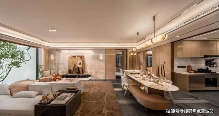 在材质与细节上,115㎡户型从入户开始就拉满顶豪质感,木饰面可随心切换高光白栓木/ 雅光球莎木双款木饰面,搭配铂金冰玉等三款岩板背景墙,让小户型也有不妥协的专属格调。