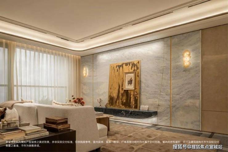 玄关+背景墙升级为天然石材,真正实现 “一户一宅” 的高定体验。