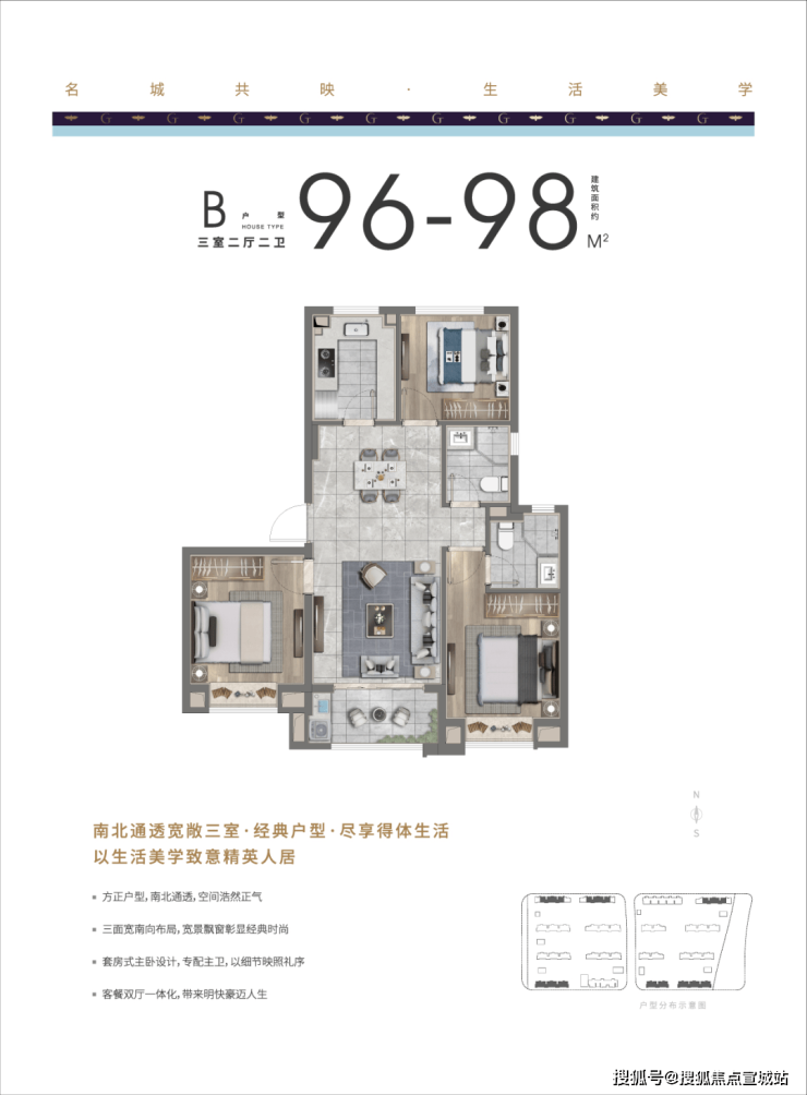 🏠产品介绍:建面约100㎡三房,建面约120㎡四房,精装修交付