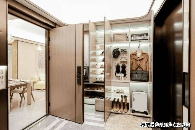 电梯开门进入后,有一个约6-8㎡的私人入户玄关,这个是不计入产证面积的,相当于免费赠送了个使用空间!