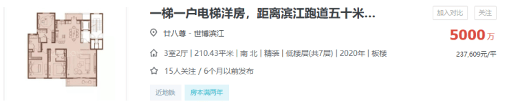 以黄浦滨江的廿八尊为例,2020年交房的纯洋房社区,仅1套挂牌,单价高达23.76万/㎡,而同板块次新高层挂牌单价19万+,廿八尊洋房溢价超20%!