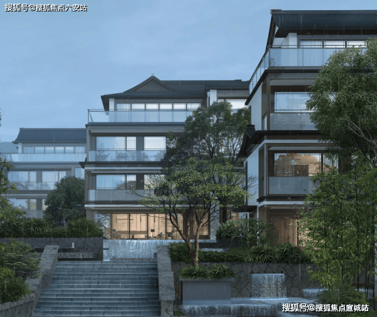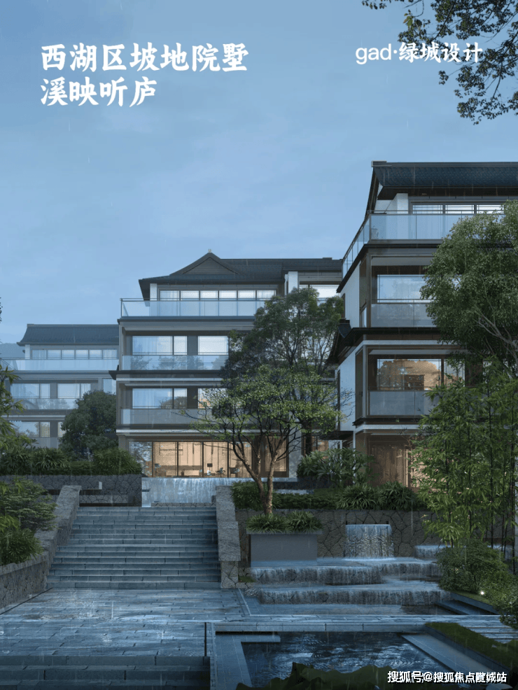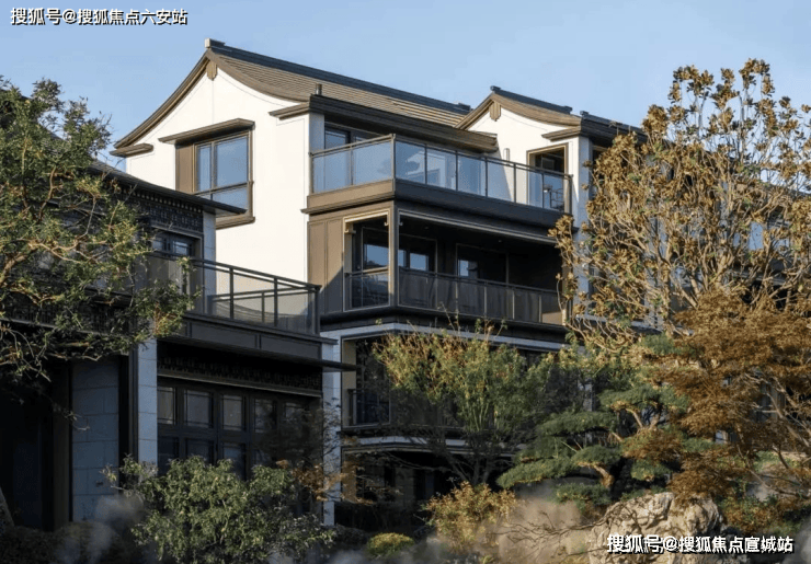 滨江溪映听庐,面向西湖群山,产品类型:容积率低至1.1纯粹的叠墅社区,立面飞檐翘角、白墙瓦黛,呈现出一片祥和与宁静的水墨画风格,主力户型建面约202-260方。