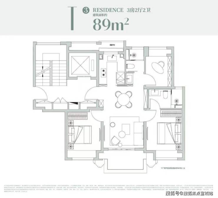 约99㎡户型设计:经典飞机户型格局!独立观景阳台!