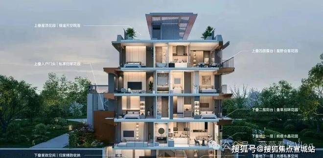 不止做了架空层,数量更是高达9个。下沉式会所则包含了多功能厅+泳池+健身区+超大水景庭院。