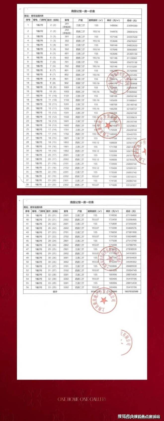 一批次一房一价表