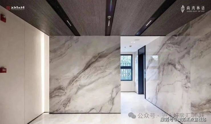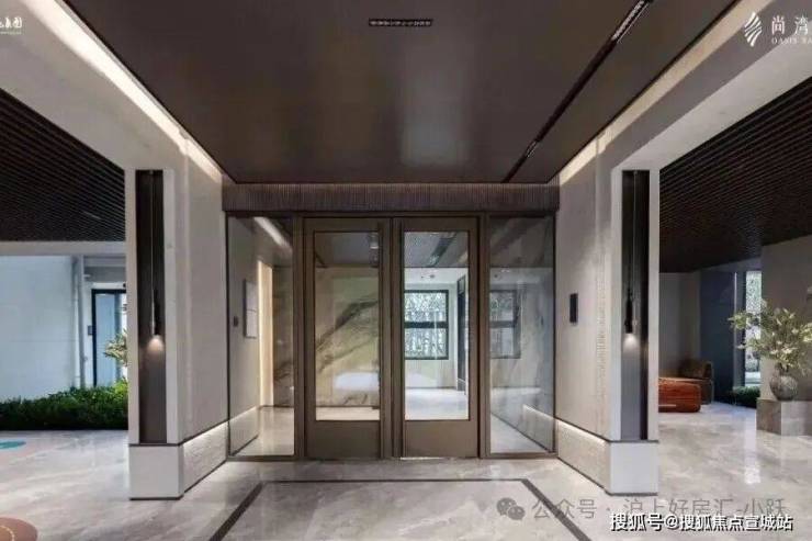进入南入户大堂,能感受到具有仪式感的现代轻奢设计,灰色大面铝板搭配金色格栅,每一次入户都能体验到无比尊崇的感觉。内部墙面做了大面积岩板,以及具有设计感的吊顶,更贴心地配备了空调,营造舒适的环境。