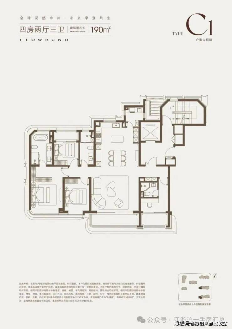 值得一提的是,190-195㎡的边套拥有全落地玻璃景观客厅+主次卧贯通景观阳台设计,高区直面滨江景观,头等舱的视野相当震撼!
