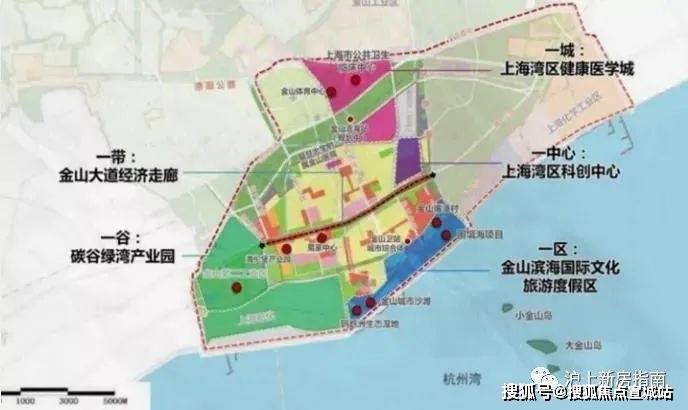 以联动杭州湾,实践2035长三角一体化发展战略,树立上海西南重要门户。通过打造“上海湾区”城市品牌,成为产城融合样板城市、滨海花园城市、门户节点城市。