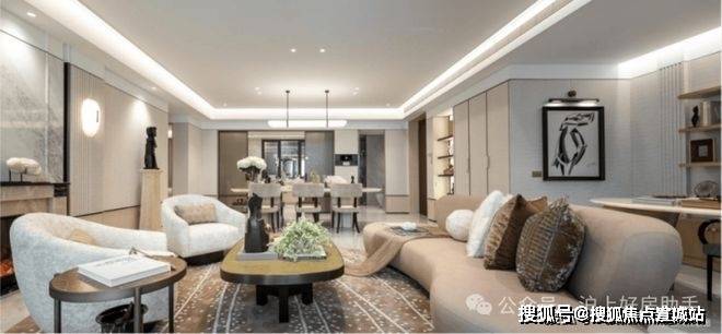 超大尺度的客餐厅,全明厨房,通过巧妙的布局,将居住、生活、社交等功能完美融合