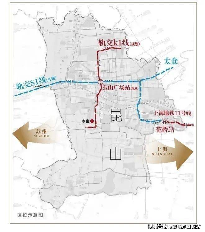 2、K1(规划)+S1(在建)快速联动长三角,邻张浦城市主干道亲和路,纵贯昆山南北;