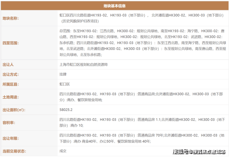 2021年2月,上海虹口城市更新建设发展有限公司(上海地产联合体)以111.35亿拿下了虹口区四川北路街道HK193-02(17街坊弘安里)、HK193-03(地下部分);北外滩街道HK300-02、HK300-03(地下部分)(历史风貌保护旧改项目)。
