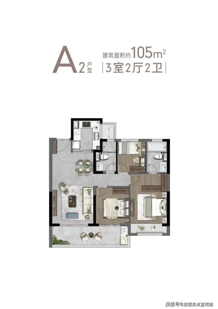 【建面105㎡3居】240.0-260.0万-分布于2号楼 1号楼 3# 4# 等,2梯4户,层高3.00米,总楼层24-26F