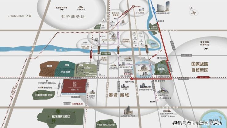 其中,南枫线规划里程约93公里,是南上海东西向大动脉,届时将串连起临港自贸区新片区、奉贤新城以及金山枫泾等区域,它会经过「大名城·映雨江南」所在的庄行镇。年初奉贤区的某次工作报告中明确指出:实现南枫线5年内开工!