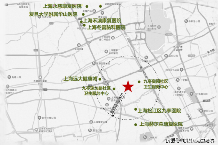 项目周边聚集多家三甲医院和高端康复及专科医院:如复旦大学附属华山医院虹桥院区、上海冬雷脑科医院等。